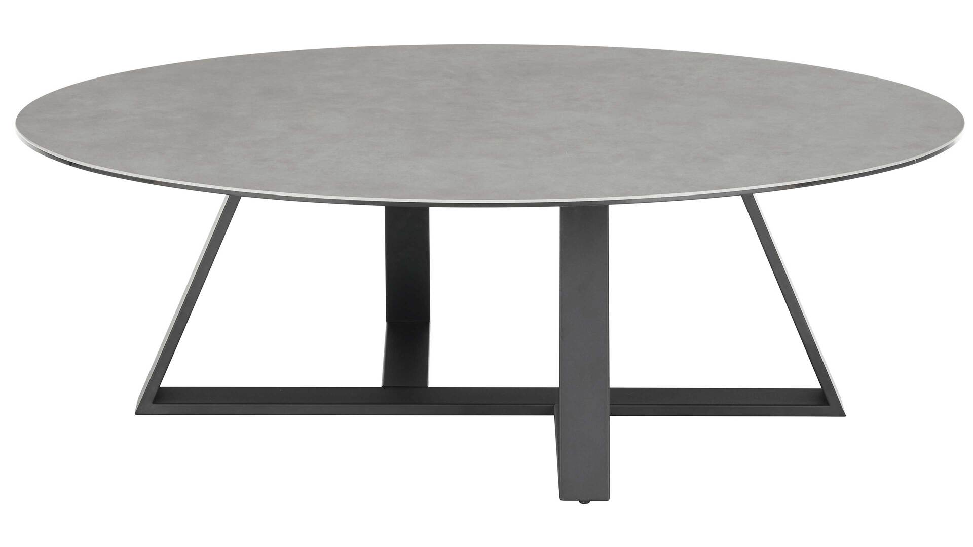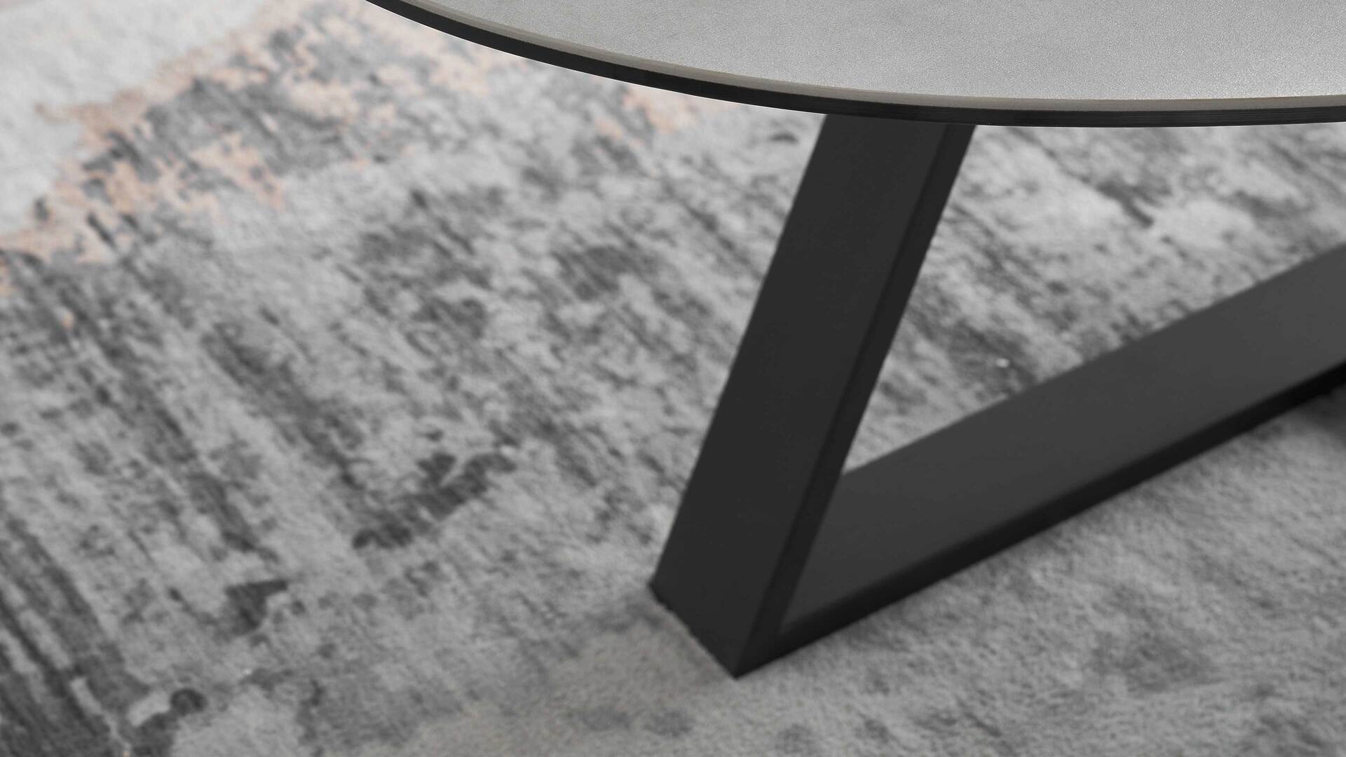 Das mattschwarze Metallgestell mit rauer Oberfläche verleiht dem Tisch eine robuste und doch stilvolle Ausstrahlung. Die schwarze Bodenplatte sorgt für zusätzliche Stabilität. Die Keramikplatte des Sofatisches ist bis zu 20 kg belastbar, so dass Sie problemlos Bücher, Zeitschriften oder Dekorationsgegenstände darauf platzieren können.
