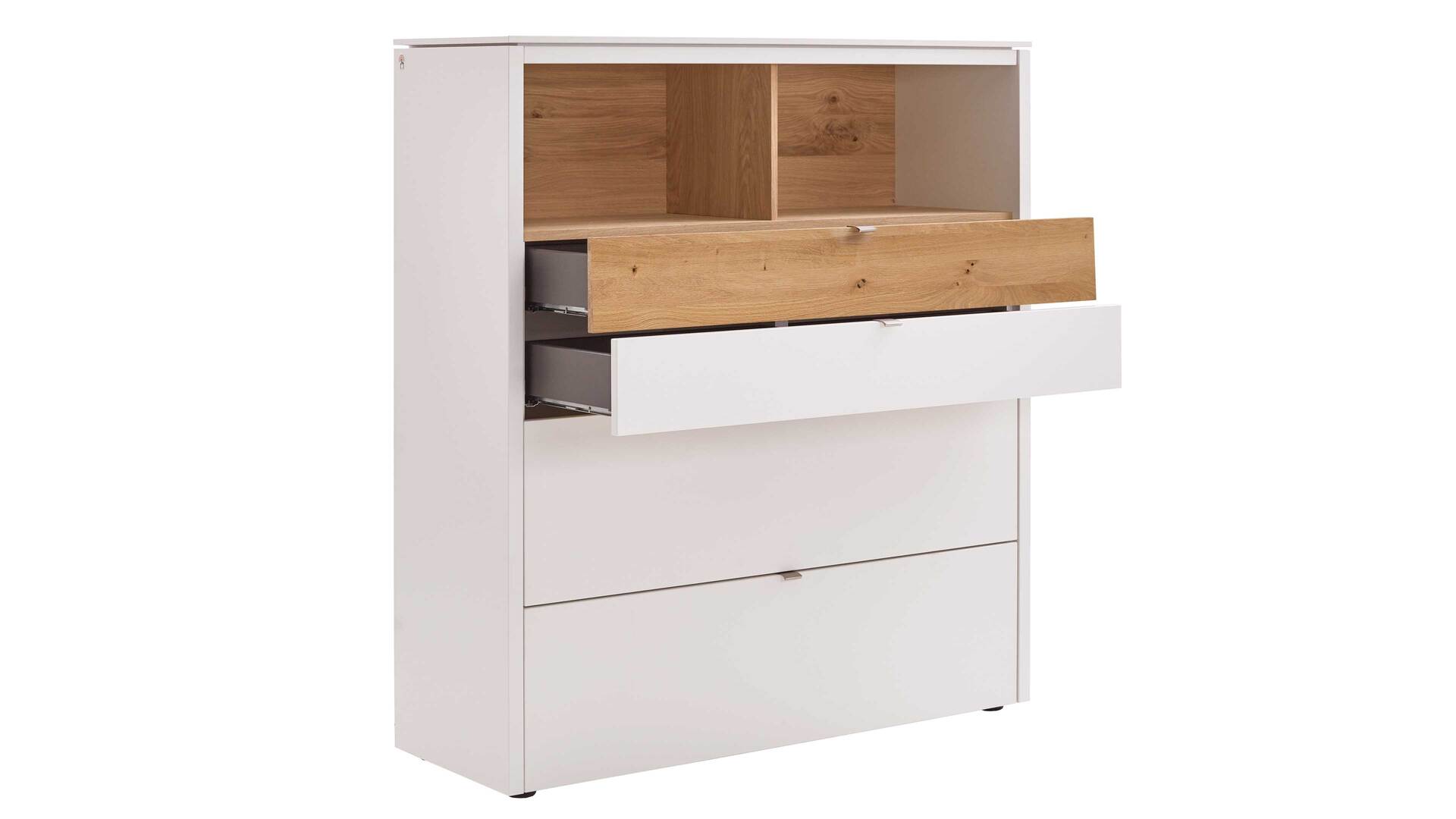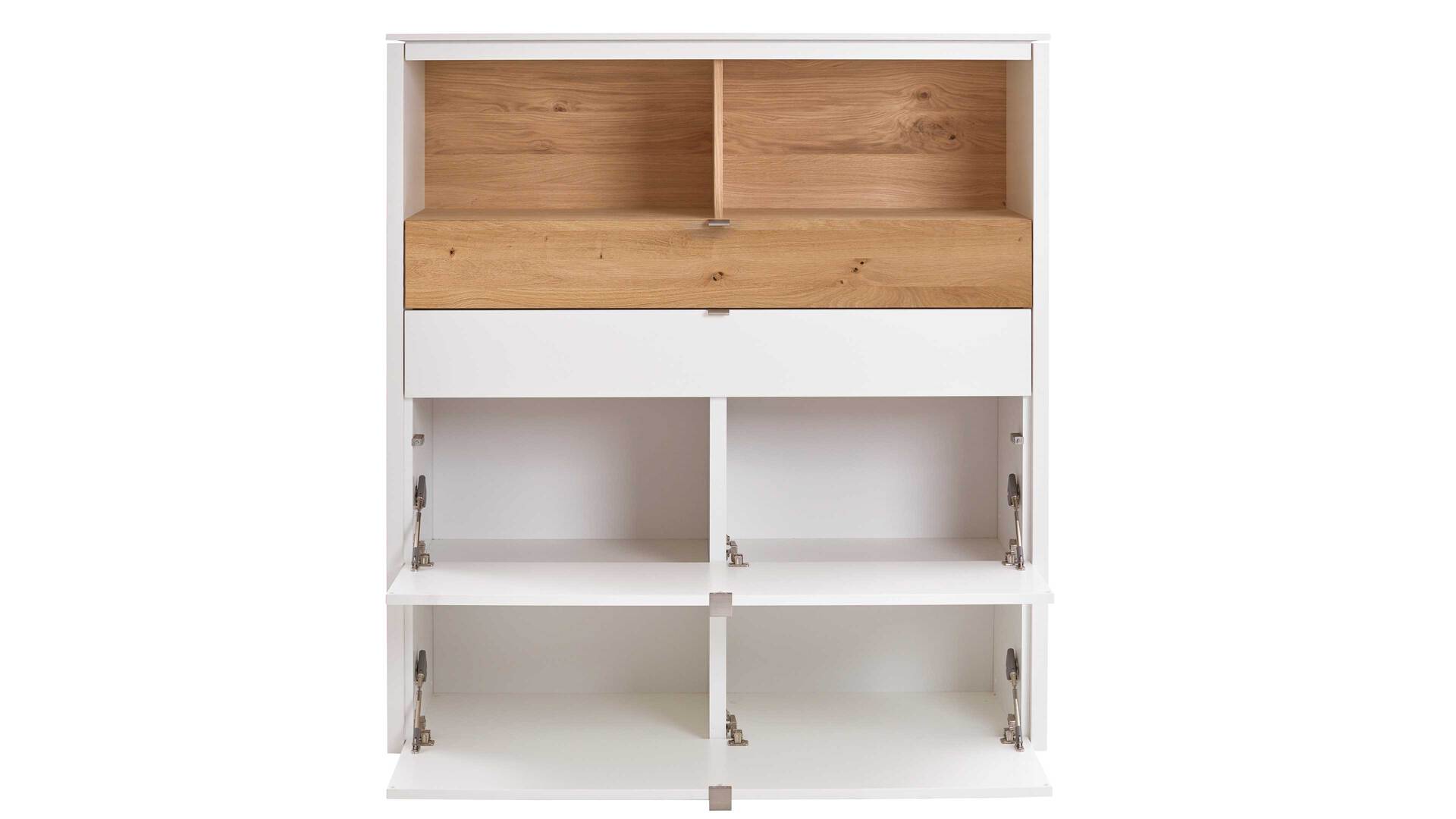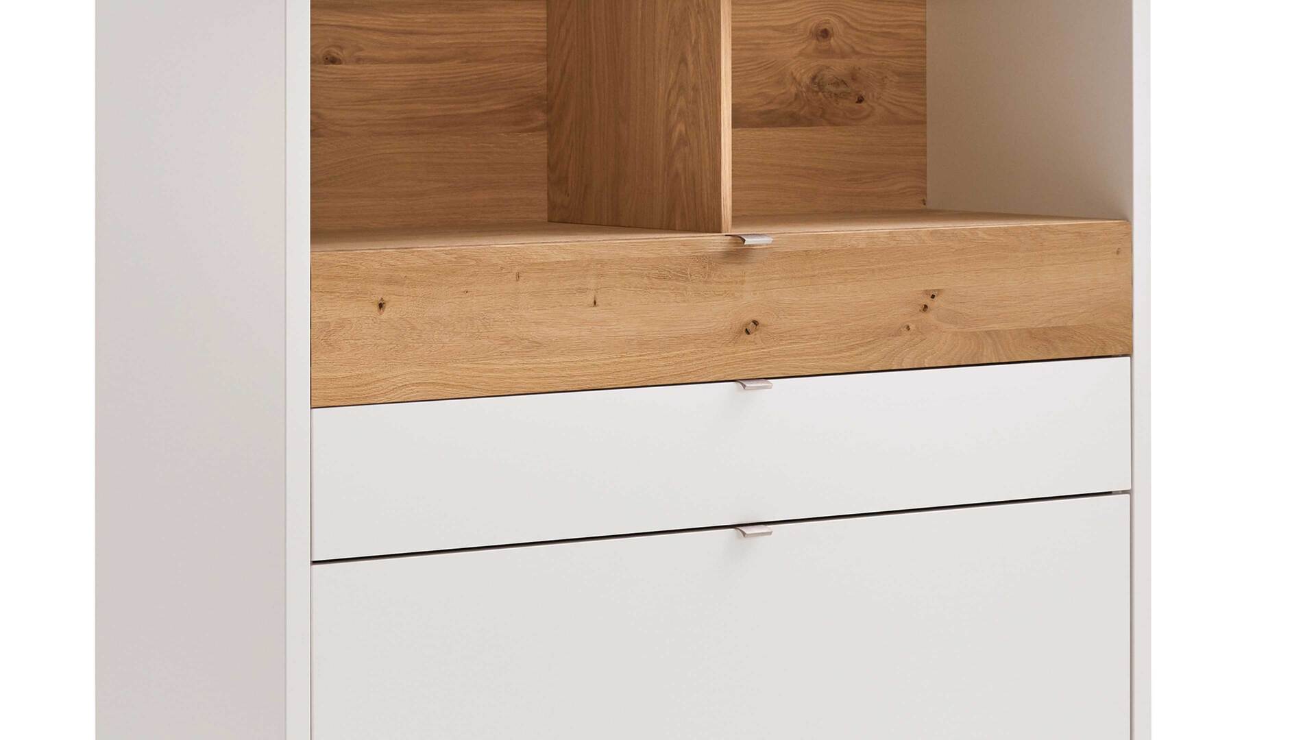 - Hochwertige Materialien wie Massivholz, Lack und Glas