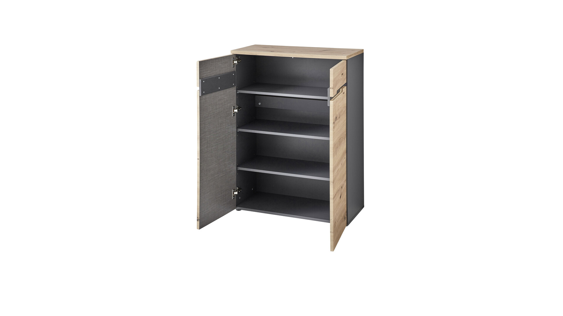 Die Kommode 50 34 GH 23 aus der Kommoden Serie Memphis ist hochwertig verarbeitet und modern-elegant designt. Sie kombiniert authentische Artisan-Eiche-Nachbildung mit Graphit - und damit zwei absolute Trendfarben, die perfekt harmonieren. Ein besonderes Gestaltungsmerkmal des Kommodenschranks bilden die Griffausfräsungen der Fronten.