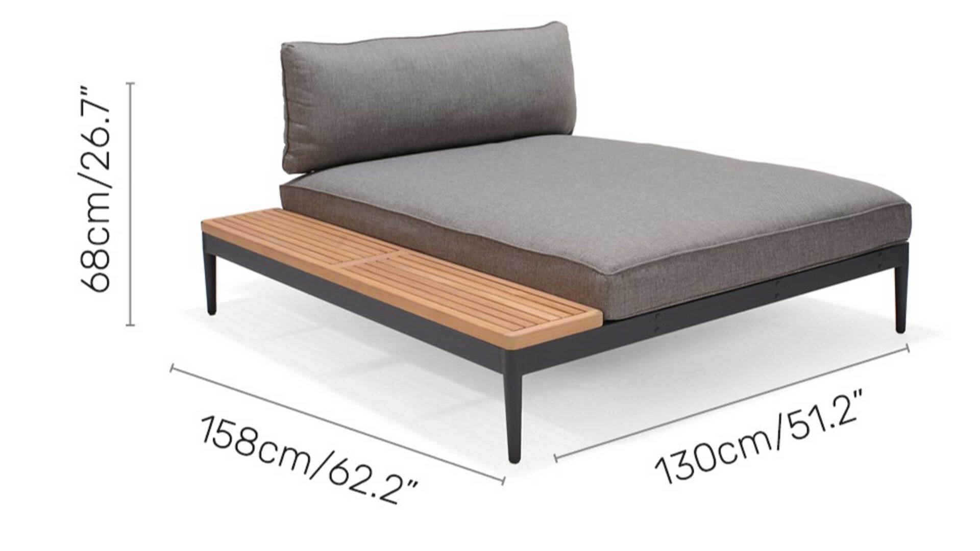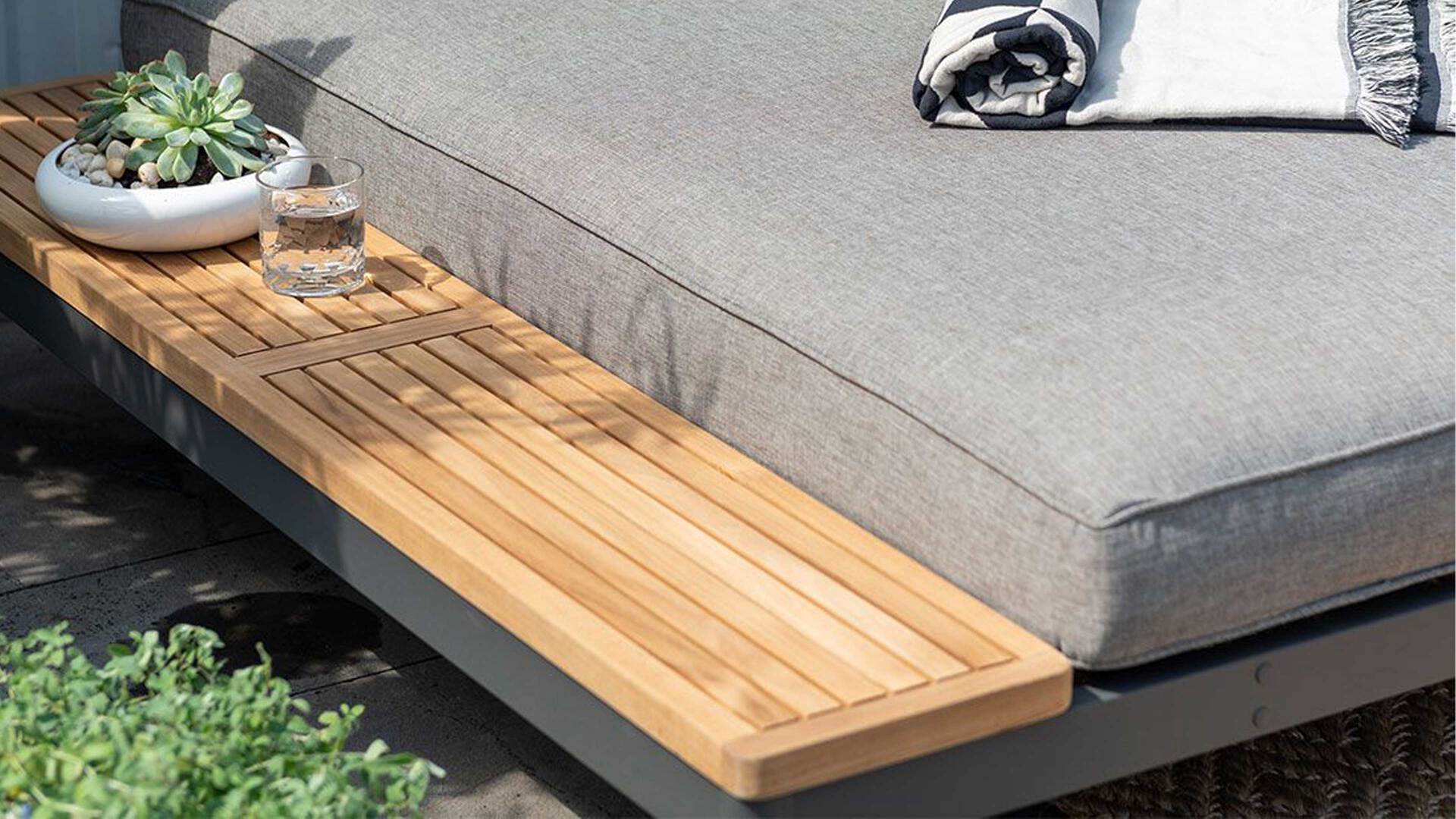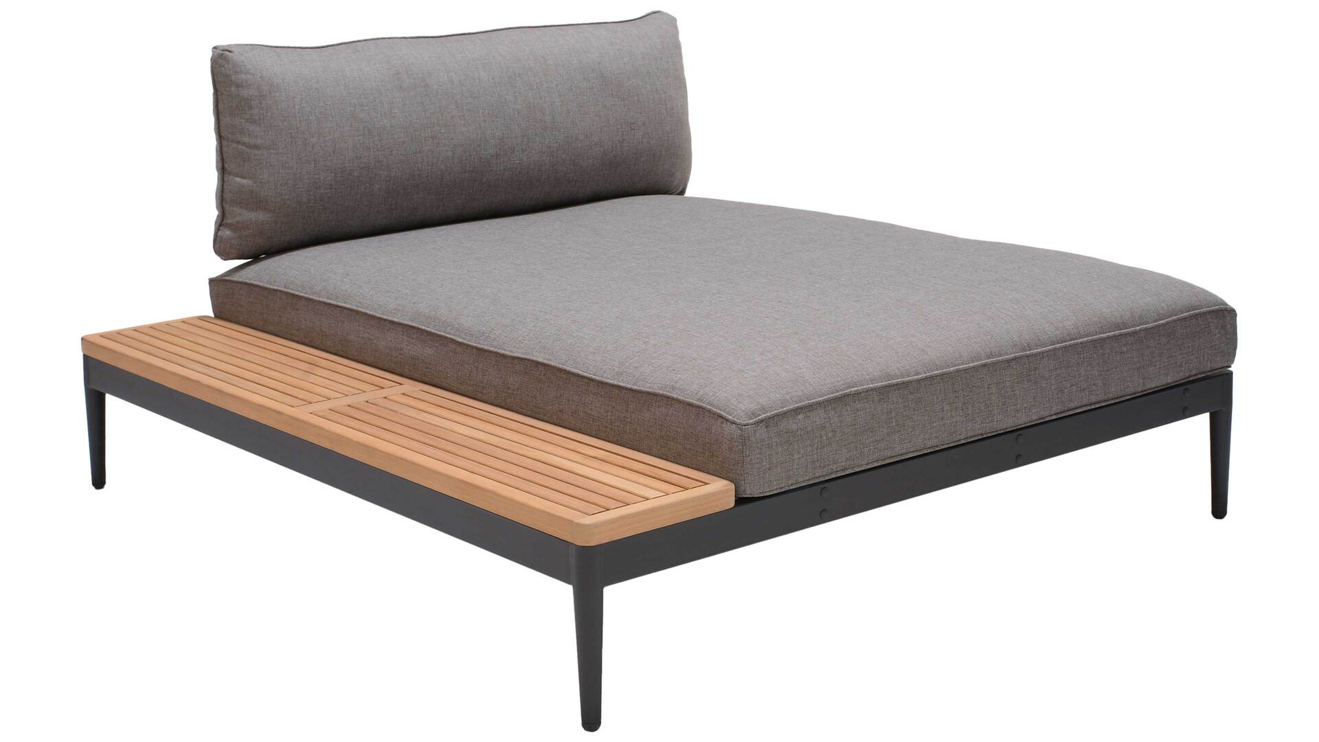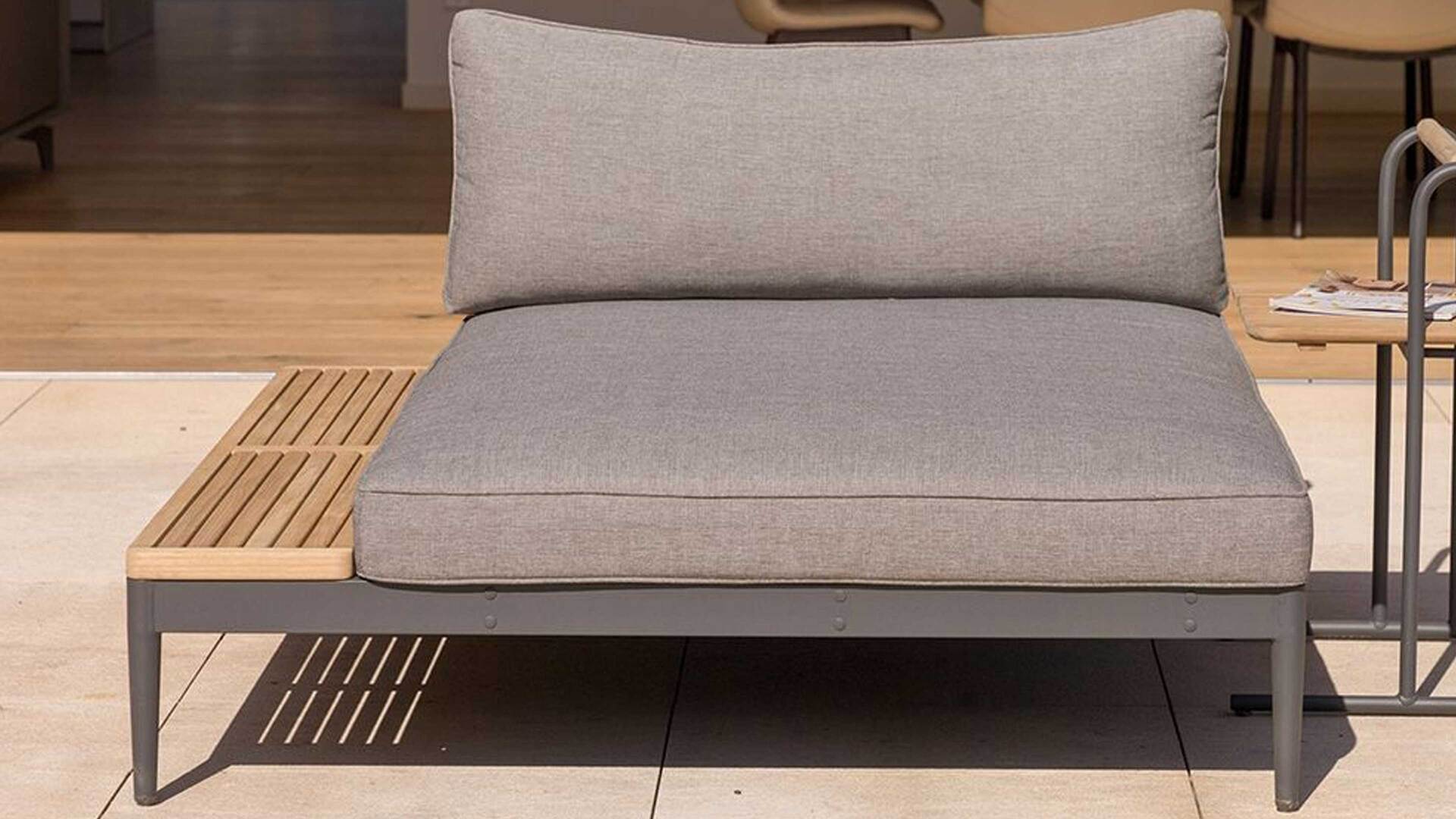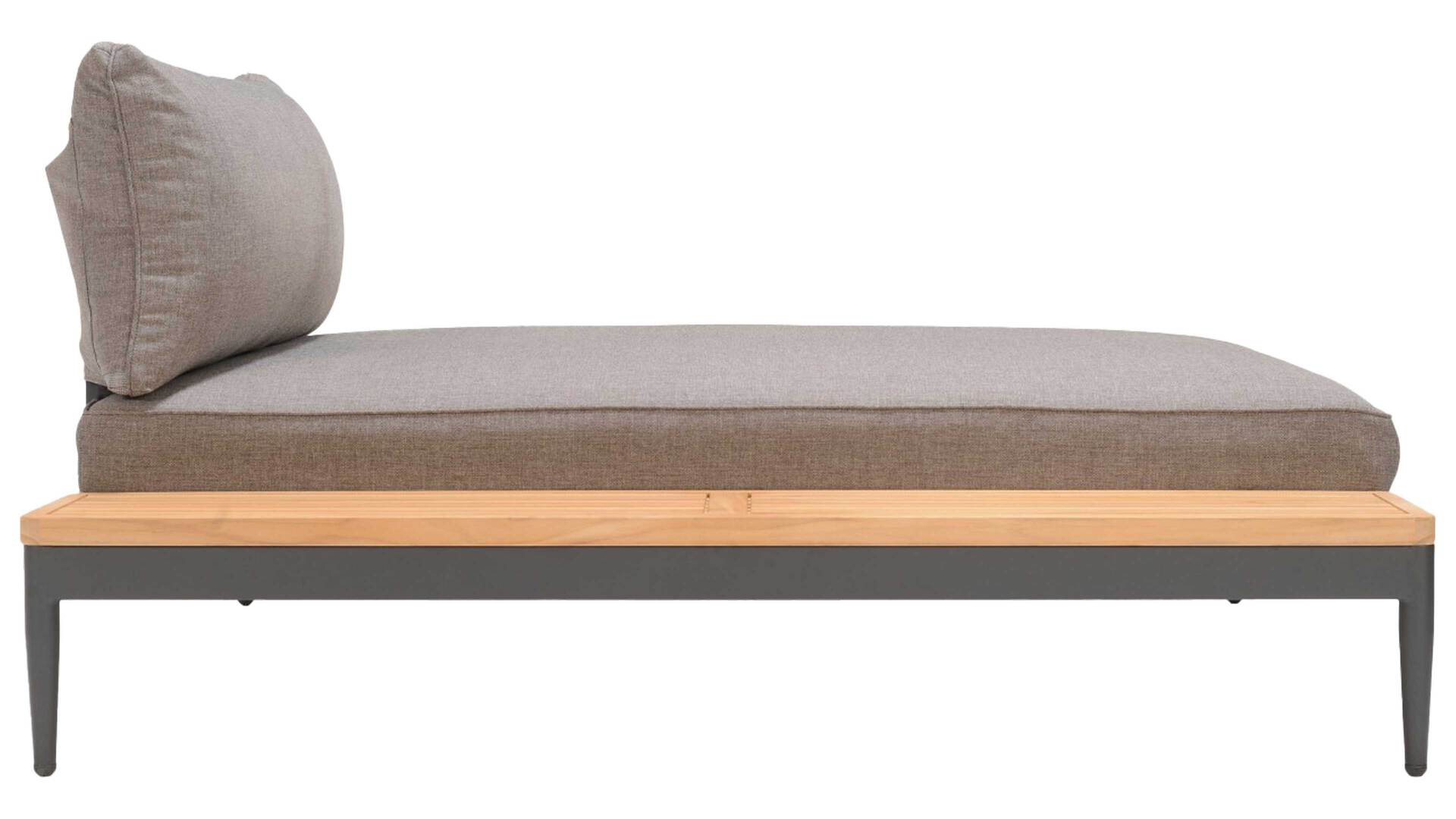 grauer Olefinbezug, Magnesiumgrau pulverbeschichtetes Aluminium und Teakholz