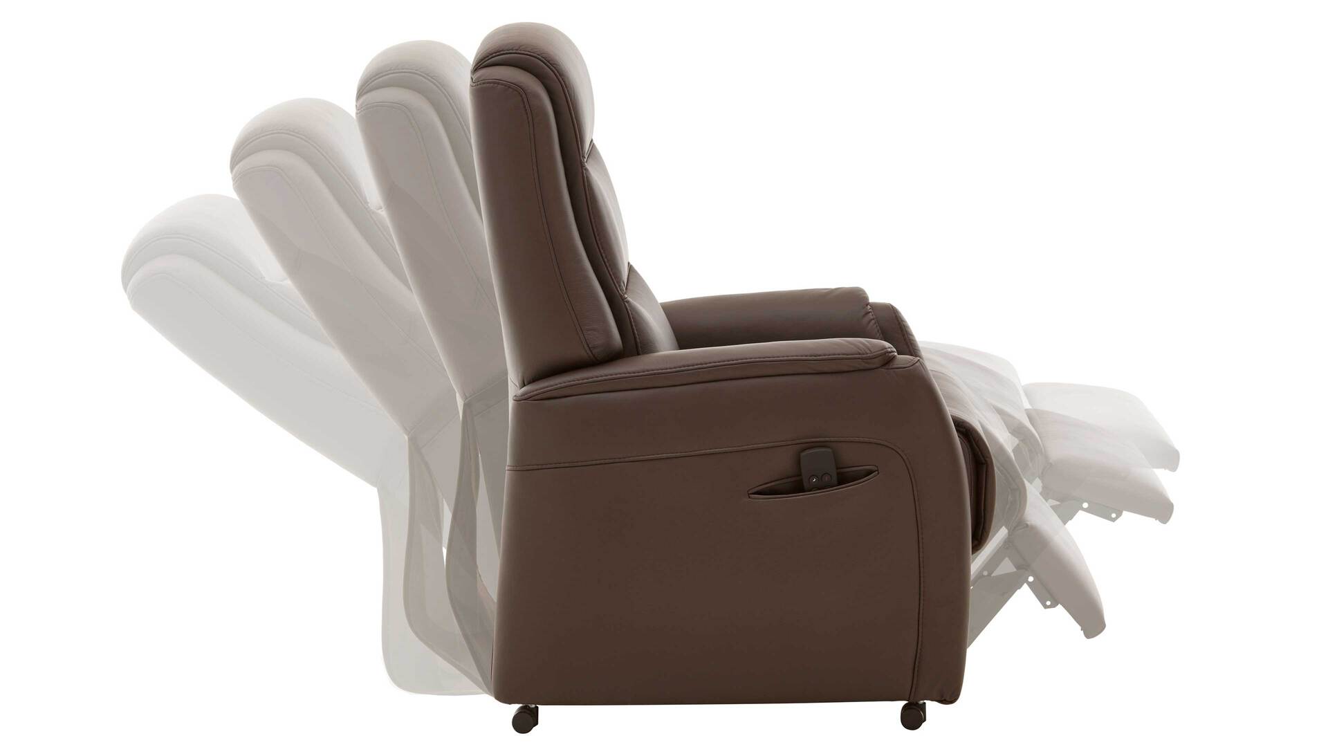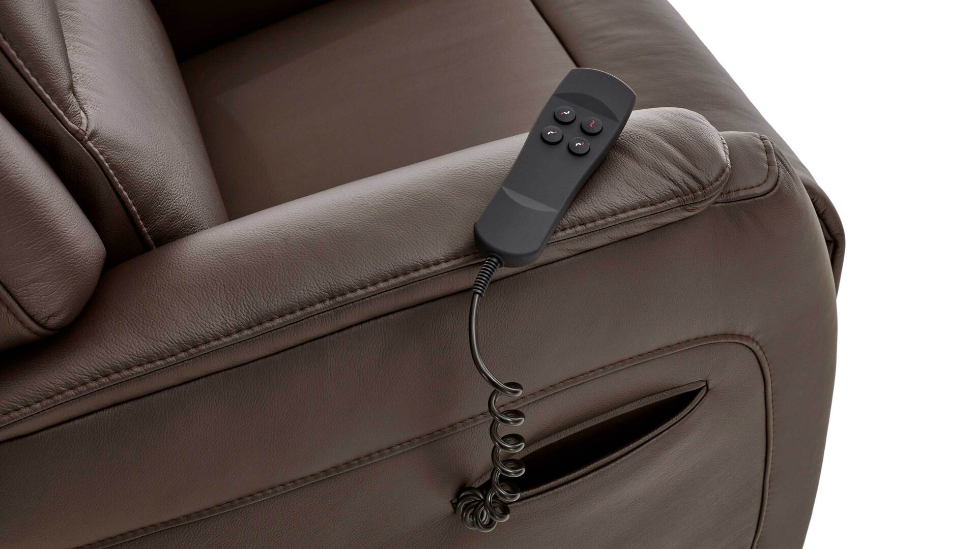 Dank der bequemen Federkernpolsterung auf einer Wellenunterfederung im Sitz und der hochwertigen Polyätherschaumpolsterung in der Rückenlehne sorgt der Fernsehsessel mit der Ergonomie L für hohen Komfort. Dazu tragen auch die motorischen Relaxfunktionen bei: Durch die zwei integrierten Motoren können Sie die Rückenlehne und Beinauflage einfach per Knopfdruck stufenlos synchron verstellen. Ein weiterer funktionaler Höhepunkt ist die motorische Aufstehhilfe. In der praktischen Seitenteiltasche des leger gepolsterten Relaxsessels haben Sie unter anderem Platz für Ihre TV-Fernbedienung.