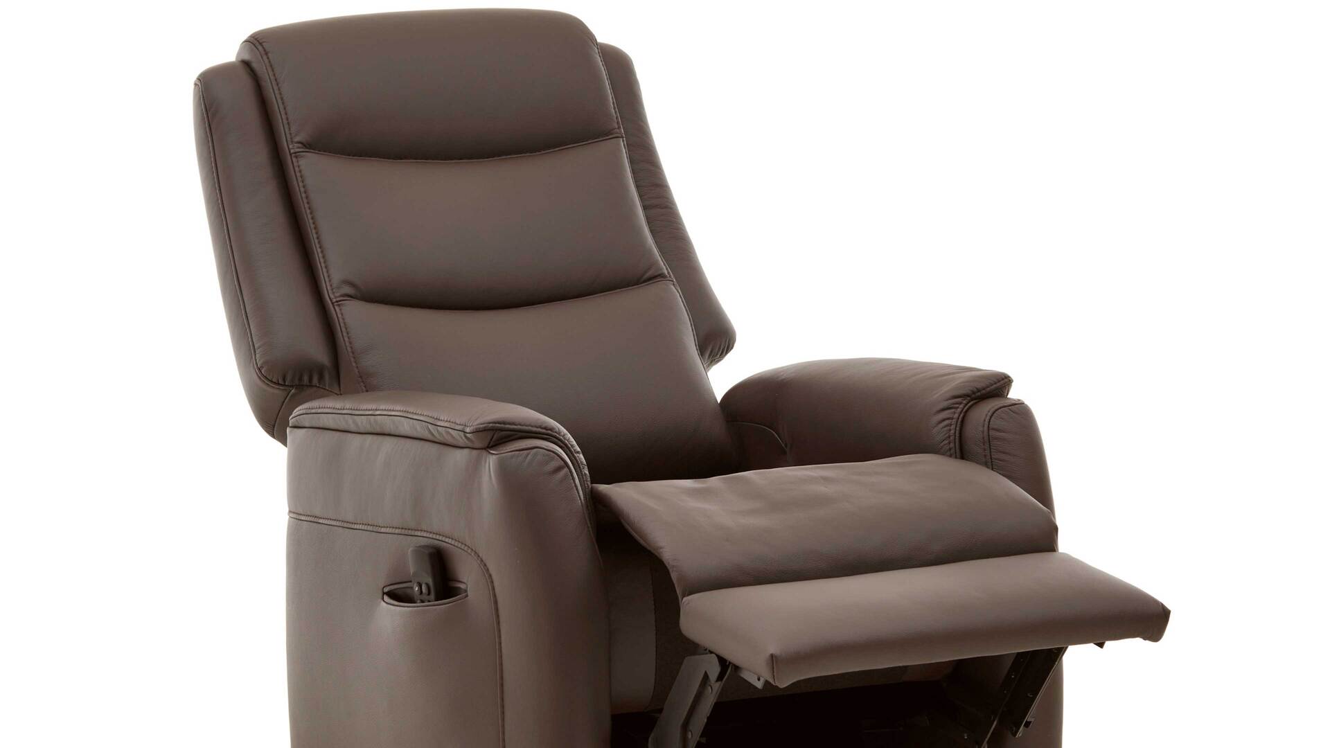 Der stilvoll designte TV-Sessel A4 aus der OrthoSedis Serie OS-HU1111 weist einen schokofarben pigmentierten Lederbezug auf, der moderne Eleganz ausstrahlt und dazu pflegefreundlich und leicht zu reinigen ist. Als Füße fungieren drehbare Doppelrollen, mit denen Sie den Sessel mühelos verschieben können.