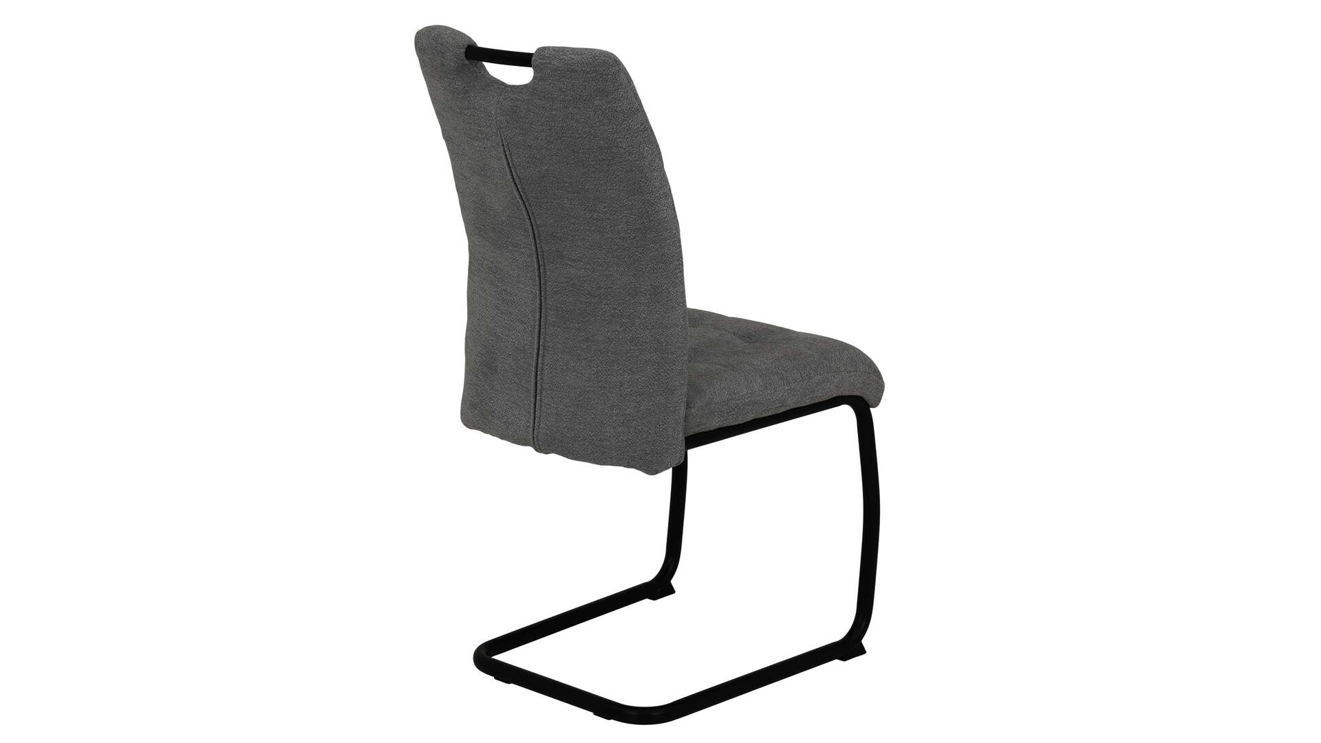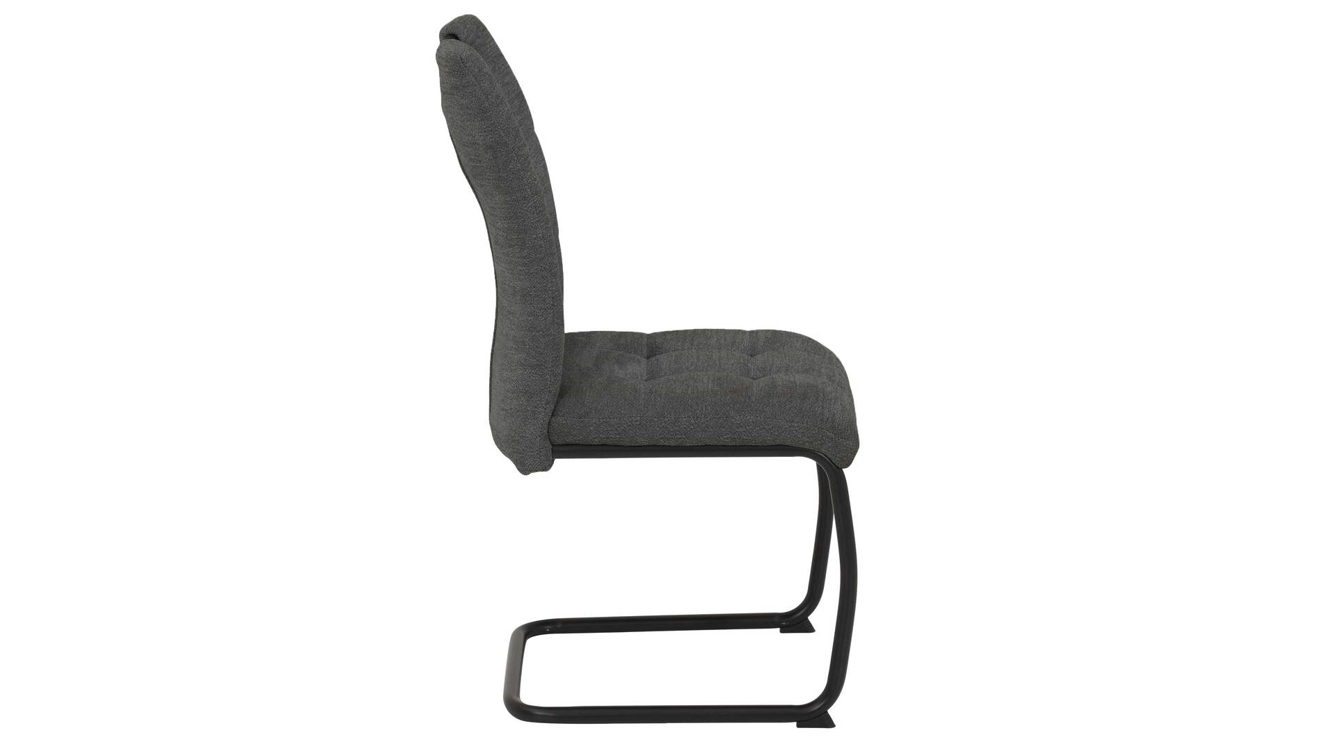 Der Schwingstuhl Karla S zeichnet sich durch sein edles Design, den hohen Komfort und die exzellente Verarbeitungsqualität aus. Er kombiniert anthrazitfarbenen Webstoff in Teddy-Optik mit einem schlichten schwarzen Rundrohr-Metallgestell. Die Materialien und Farben verleihen dem Freischwinger eine moderne und elegante Ausstrahlung.