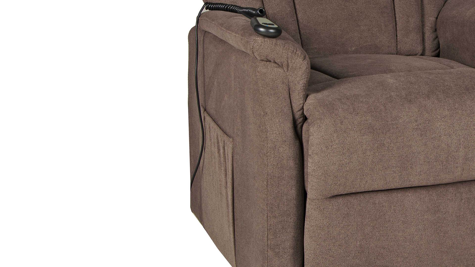 Der Komfortsessel ist mit einem Klemmschutz für Ihre Hände versehen. In puncto Design präsentiert sich der Fernsehsessel schlicht-modern. Er ist mit einem dunkelbraunen Stoff bezogen, der sich dank des gedeckten Farbtons in beliebige Einrichtungskonzepte harmonisch einfügt.